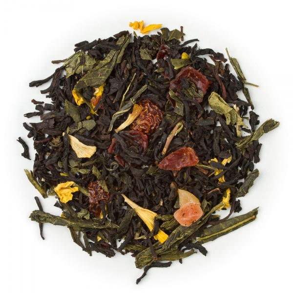 | Ingrediente | ceai negru, ceai verde, cuburi papaya (zahar), macese, flori de floarea soarelui, arome |