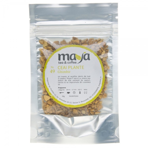Tinut la mare pret de-a lungul secolelor, ghimbirul a devenit de neinlocuit in zilele noastre, astfel ca nu ne mai putem inchipui experientele gustative fara el. Radacina ghimbirului, asa numita Rhizome, creste pe orizontala, impletindu-se cu solul. Ceaiul pe care ti-l propunem este compus exclusiv din ghimbir si este un inamic al racelilor demn de luat in seama. Poate fi servit cu miere sau folosit alaturi de alte varietati de ceaiuri, carora le va imprumuta cu siguranta din scanteia sa.