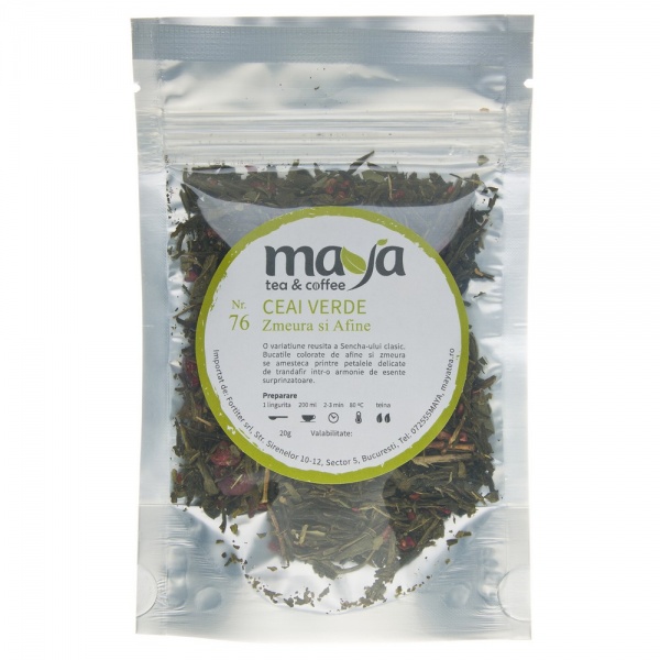 | Ingrediente | ceai verde, petale de trandafir, bucati de zmeura liofilizate, felii de afine liofilizate. |